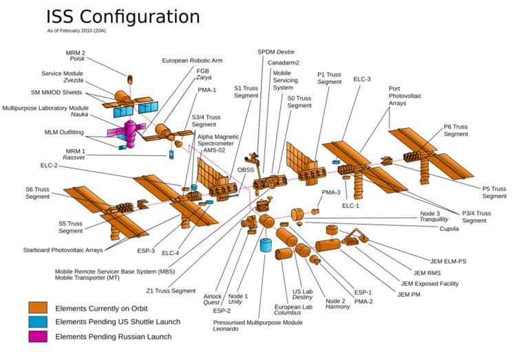 | Keywords: ISS configuration 2010-02 en.svg validSVG The 20A configuration of the International Space Station following the addition of the Tranquillity node and Cupola launched by the Space Shuttle Endeavour on STS-130 Public domain work modified by uploaders <br/><br/>Original <br/> http //www nasa gov/images/content/166624main_iss_config_012007 jpg<br/> http //www nasa gov/mission_pages/station/multimedia/scalemodel/index html 2009-11-26 NASA and James Humphreys Colds7ream PD-USGov-NASA Colds7ream 2009-11 translatable Obsolete diagrams of the International Space Station |