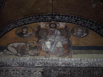 Keywords: Istanbul.Hagia Sophia016.jpg Hagia Sophia mosaic above the imperial gate dating from the 920s ; Istanbul Turkey License Hagia Sophia Istanbul - Imperial Gate mosaic