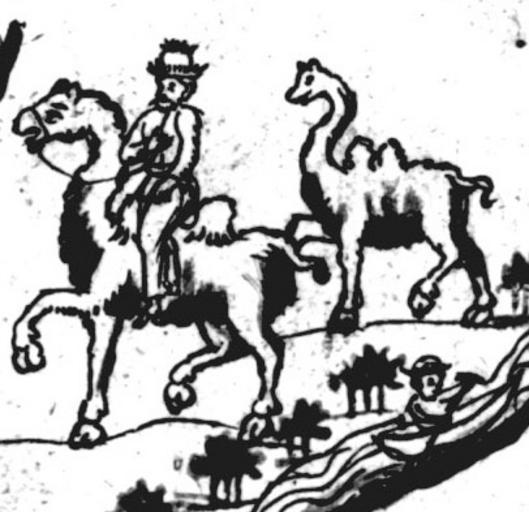 | Keywords: IstSib005 1.jpg Сиби ские на оды по Степи калмыки и мунгалы ездят на вельбудах Kalmucks and Mongols riding camels over the Great Steppe Исто ия Сиби ская ультимедиа Цент ГУ http //www mmedia nsu ru/vbook/vbook/obj8/MINIATURES htm 1697 - 1703 С У Ремезов Author died more than 70 years ago - public domain PD-old Remezov Chronicle Camels in art Kalmyks |