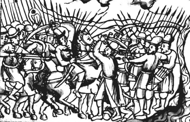Keywords: IstSib012 1.jpg Битва войск Чингиза и хана И тышака Исто ия Сиби ская ультимедиа Цент ГУ http //www mmedia nsu ru/vbook/vbook/obj8/MINIATURES htm 1697 - 1703 С У Ремезов Author died more than 70 years ago - public domain PD-old Remezov Chronicle |