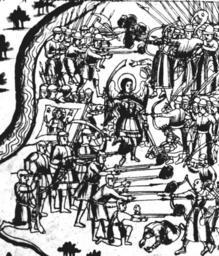 Keywords: IstSib033 1.jpg Битва под Бе езовым Я ом Исто ия Сиби ская ультимедиа Цент ГУ http //www mmedia nsu ru/vbook/vbook/obj8/MINIATURES htm 1697 - 1703 С У Ремезов Author died more than 70 years ago - public domain PD-old Remezov Chronicle