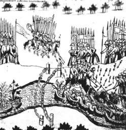Keywords: IstSib034 1.jpg Бой в у очище Ка аульный Я Исто ия Сиби ская ультимедиа Цент ГУ http //www mmedia nsu ru/vbook/vbook/obj8/MINIATURES htm 1697 - 1703 С У Ремезов Author died more than 70 years ago - public domain PD-old Remezov Chronicle