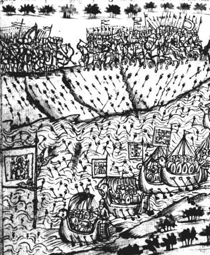 Keywords: IstSib041 1.jpg Тата ы пустиша бесчисленно ст ел аки дождя с го ы на ст уги Исто ия Сиби ская ультимедиа Цент ГУ http //www mmedia nsu ru/vbook/vbook/obj8/MINIATURES htm 1697 - 1703 С У Ремезов Author died more than 70 years ago - public domain PD-old Remezov Chronicle |