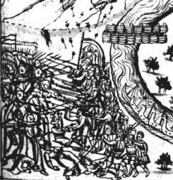 | Keywords: IstSib053 1.jpg Бой казаков с кучумлянами у засеки Исто ия Сиби ская ультимедиа Цент ГУ http //www mmedia nsu ru/vbook/vbook/obj8/MINIATURES htm 1697 - 1703 С У Ремезов Author died more than 70 years ago - public domain PD-old Remezov Chronicle |