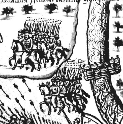 Keywords: IstSib055 2.jpg От яд Кучума у засеки под Чувашевым Исто ия Сиби ская ультимедиа Цент ГУ http //www mmedia nsu ru/vbook/vbook/obj8/MINIATURES htm 1697 - 1703 С У Ремезов Author died more than 70 years ago - public domain PD-old Remezov Chronicle |