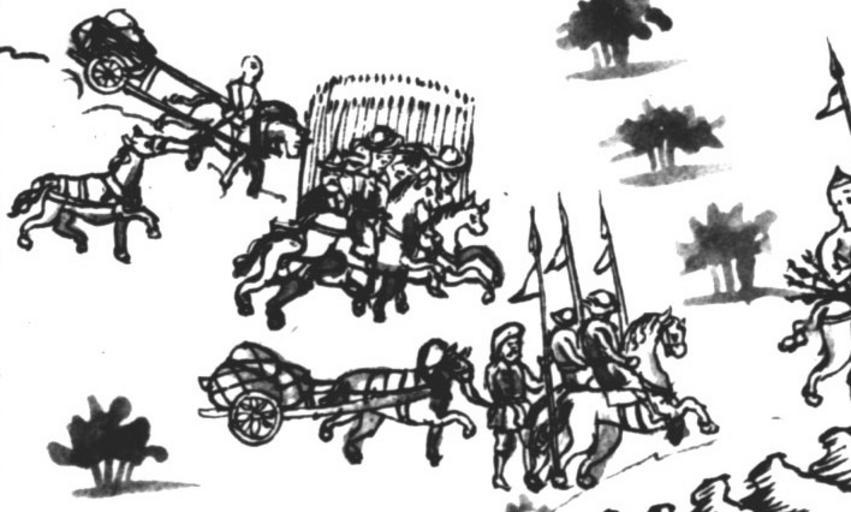 Keywords: IstSib078 1.jpg Бегство тата из-под осажденного го ода Исто ия Сиби ская ультимедиа Цент ГУ http //www mmedia nsu ru/vbook/vbook/obj8/MINIATURES htm 1697 - 1703 С У Ремезов Author died more than 70 years ago - public domain PD-old Remezov Chronicle |