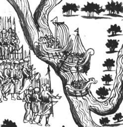 | Keywords: IstSib096 1.jpg Воевода Иван ансу ов с войском посланным из осквы плывет по И тышу Исто ия Сиби ская ультимедиа Цент ГУ http //www mmedia nsu ru/vbook/vbook/obj8/MINIATURES htm 1697 - 1703 С У Ремезов Author died more than 70 years ago - public domain PD-old Remezov Chronicle |