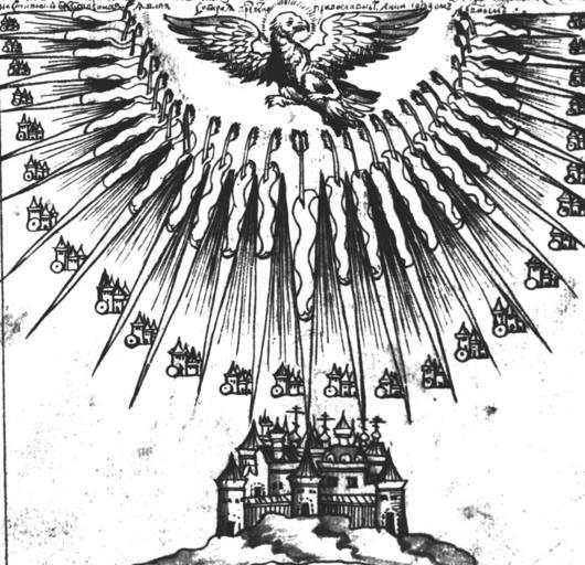 | Keywords: IstSib116 1.jpg Знамение воссиявшей и п ославившейся Сиби и Исто ия Сиби ская ультимедиа Цент ГУ http //www mmedia nsu ru/vbook/vbook/obj8/MINIATURES htm 1697 - 1703 С У Ремезов Author died more than 70 years ago - public domain PD-old Remezov Chronicle |