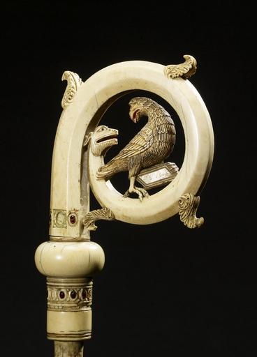 | Keywords: Italian - Crozier Head with the Eagle of Saint John - Walters 71300 - View B.jpg  This crosier possibly made in Sicily in the thirteenth century is made of ivory with a depiction of an eagle set inside the crook The curve of the crook is marked with small leaves or tendrils reminiscent of the swirling vines that form the shapes of illuminated initials in some manuscripts from this period The sprouting curve ends in the head of a dragon with his mouth open and ears flattened against his head and perched within this scroll is an eagle the symbol of John the Evangelist The eagle holds a book inscribed with abbreviated forms of the Latin words for John and Evangelist confirming that this is no ordinary bird but a symbol of the Gospel author The eagle turns his head to confront the dragon eye to eye - a depiction of the power of the Word of God to conquer evil The piece is inset with colored glass and there is evidence that parts of it were once set off with gold and paint century 13 Medieval ivory with polychrome and glass inlay cm 19 6 12 1 4 5 accession number 71 300 24336 Henri Daguerre Paris by purchase Henry Walters Baltimore date and mode of acquisition unknown Walters Art Museum Henry Walters Acquired by Henry Walters An Exhibition of the Treasures of The Walters Art Gallery The Walters Art Museum Baltimore; Pace Wildenstein Gallery New York; Smith College Museum of Art Northampton 1967 Ivory The Sumptuous Art The Walters Art Gallery Baltimore 1983-1984 Illuminated Manuscripts Masterpieces in Miniature The Walters Art Gallery Baltimore 1984-1985 Highlights from the Collection The Walters Art Gallery Baltimore 1998-2001 place of origin Sicily Italy Walters Art Museum license Medieval ivory in the Walters Art Museum Italian art in the Walters Art Museum Ivory croziers Media contributed by the Walters Art Museum needs category review |
