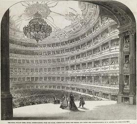 | Keywords: Italian Opera House Covent Garten interior c1847.jpg Interior view of the Royal Italian Opera House Covent Garden from the stage constructed after the designs and under the superintendence of B Albano From a newspaper cutting probably from the Illustrated London News hand-dated 1847 <br />Victoria and Albert Museum London Museum number S 6164-2009 http //collections vam ac uk/item/O205890/print-wood-engraving-h-beard-print-collection/ circa 1847 Smyth artist PD-old-100 Theatre Royal Covent Garden 1809 building Interiors of theaters in art Prints in the Victoria and Albert Museum Theatre collection of the Victoria and Albert Museum 1847 engravings 1847 in London ILN 1847 1840s interiors in art |