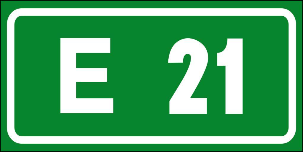| Keywords: Italian traffic signs - strada europea 21.svg Icon of european road E21 Italy Símbolo de la carretera europea E21 Italia Simbolo della strada europea 21 Italia Own work Based on ColdShine's work Fatta da me Basato sul lavoro di ColdShine 12/07/2011 Gigillo83 Other versions <gallery> File Italian traffic signs - old - numero Europeo svg Old version </gallery> Diagrams of European road signs of Italy E 021 SVG road signs in Italy E 021 | ||||