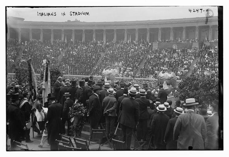 | Keywords: Italians in stadium (LOC) (19863317741).jpg Bain News Service publisher Italians in stadium between ca 1915 and ca 1920 1 negative glass ; 5 x 7 in or smaller Notes Title from unverified data provided by the Bain News Service on the negatives or caption cards Forms part of George Grantham Bain Collection Library of Congress Format Glass negatives Rights Info No known restrictions on publication Repository Library of Congress Prints and Photographs Division Washington D C 20540 USA http //hdl loc gov/loc pnp/pp print hdl loc gov/loc pnp/pp print General information about the Bain Collection is available at http //hdl loc gov/loc pnp/pp ggbain hdl loc gov/loc pnp/pp ggbain Higher resolution image is available Persistent URL http //hdl loc gov/loc pnp/ggbain 24720 hdl loc gov/loc pnp/ggbain 24720 Call Number LC-B2- 4247-9 https //www flickr com/photos/library_of_congress/19863317741/ Italians in stadium LOC LOC-image ggbain 24720 https //www flickr com/people/8623220 N02 The Library of Congress http //www loc gov/rr/print/195_copr html noknown The Library of Congress Flickr Commons PD-Bain The Library of Congress https //flickr com/photos/8623220 N02/19863317741 2016-09-08 07 51 11 pd Uncategorized 2016 November 4 |