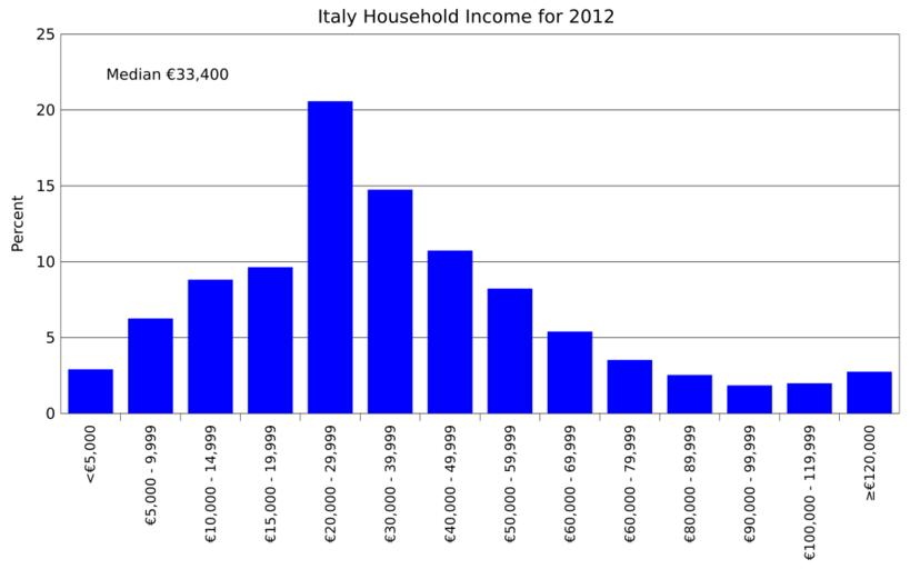 | Keywords: Italy household income.svg translate yes en Italy household income distribution for 2012 Data from http //www ncbi nlm nih gov/pmc/articles/PMC4610951/ Data on Income inequality in Germany France Italy Spain the UK and other affluent nations 2012 2016-06-09 own Delphi234 other versions cc-zero Income distribution Economy of Italy |