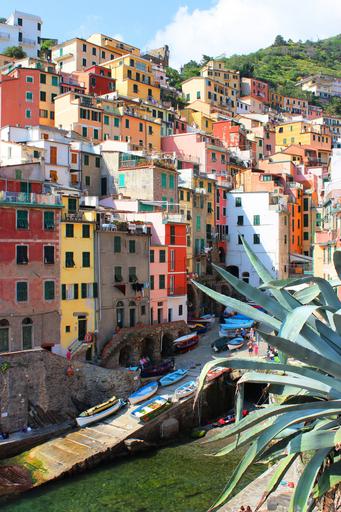 Keywords: italy liguria cinque terre sea houses colors riomaggiore boats colorful porto water sky landscape plant agave glimpse mediterranean