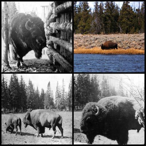 MAKE A MEME View Large Image ...Top Left) Taken in 1897, this buffalo was seen on Frank Island in Yellowstone Lake poking around, what looks like a cabin. No word if he found a good place to eat that day. (Top Right) Taken in 1959, this buffalo was found roaming around ...