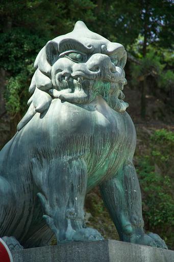 Keywords: ItsukushimaKomainu7375.jpg Komainu at Itsukushima Shrine Miyajima Hiroshima Prefecture Japan I took the photo 2005-08-06 own assumed Fg2 Itsukushima Shinto Shrine Komainu