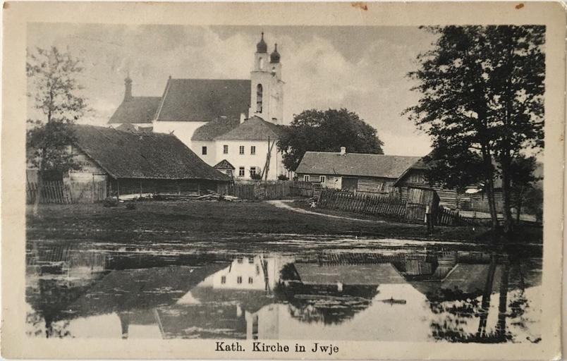 Keywords: Iŭje, Iŭjanka. Іўе, Іўянка (1916)..jpg Іўе Iŭje Кляшта бэ на дынаў з боку эчкі Іўянкі Iŭjanka www ebay de author 1916 PD-old-70 History of Iŭje Church of Saints Peter and Paul in Iŭje Images from eBay