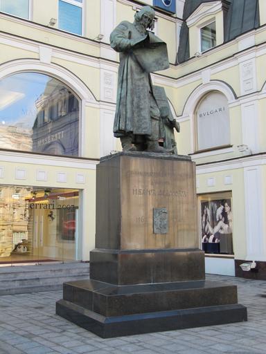 | Keywords: Ivan Fyodorov - first printer of Russia.jpg en Ivan Fyodorov - first printer of Russia Sculptor S M Volnukhin Opened in 1909 ru Памятник пе вопечатнику Ивану Федо ову на Теат альном п в оскве Скульпто С Волнухин Отк ыт в 1909 own Vladimir OKC 2010-09-24 Ivan Fyodorov Monument in Moscow |