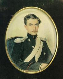| Keywords: Ivan Muraviev.jpg ru Иван Александ ович у авьёв 19 08 1830 - 18 12 1864 сын декаб иста Александ а иколаевича у авьёва 1792 - 1863 и П асковьи ихайловны Шахавской 1788-1835 http //www rgfond ru/person/show_izo php izo_src /izo/f45/p5875-0r jpg grp_desc -1458 idp 5875 еизвестный художник 1849/1851 PD-old House of Muraviev Portrait paintings in 19th-century military uniforms of Russia |