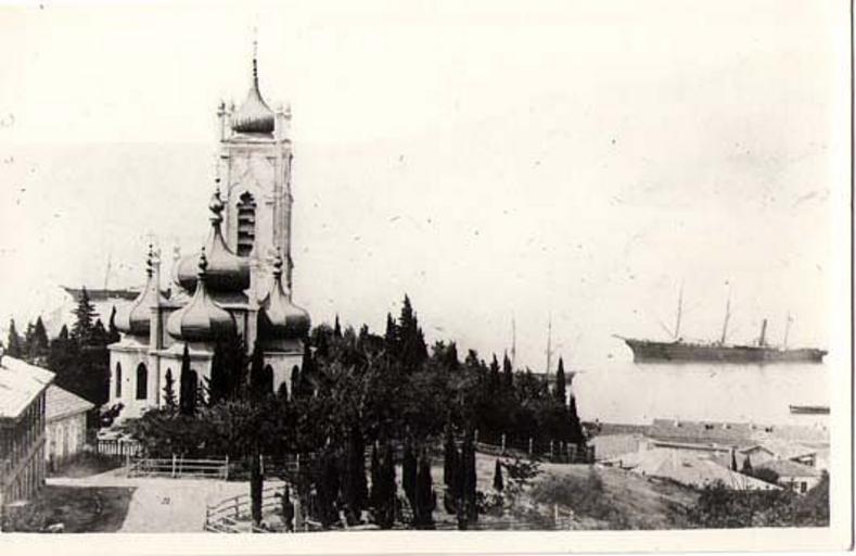 Keywords: IZ Church old.jpeg Собо Иоанна Златоуста в 19 веке А хив уме более 70 лет назад PD-old Historical images of Yalta Crimea in the 19th century