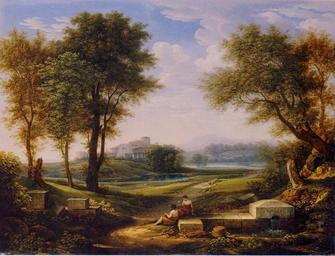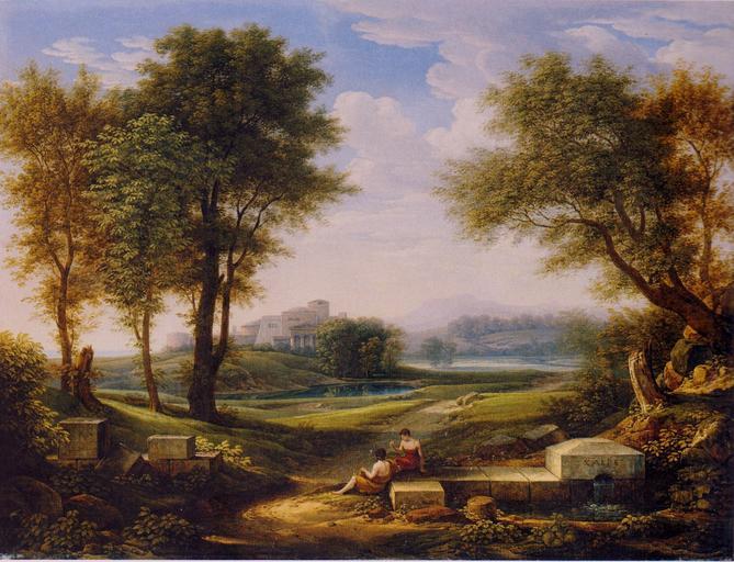 | Keywords: J C Reinhart Ideallandschaft 1811.jpg  de Ideallandschaft mit zwei Hirten an einer Quelle Öl auf Leinwand 1811 45 7 × 60 2 cm Markus Bertsch u a Herbert W Rott Andreas Stolzenburg Hrsg Johann Christian Reinhart Ein deutscher Landschaftsmaler in Rom Katalogbuch zur Ausstellung in Hamburg Hamburger Kunsthalle 2012/2013 und in München Neue Pinakothek 2013 Hirmer München 2012 ISBN 978-3-7774-8021-3 Creator Johann Christian Reinhart 1811 PD-old-100-1923 1847 Paintings by Johann Christian Reinhart 1811 paintings in Germany German paintings in the Neue Pinakothek 19th-century oil on canvas paintings in Germany 19th-century landscape paintings Category People at fountains in art 1810s paintings from Germany Template artwork possible |