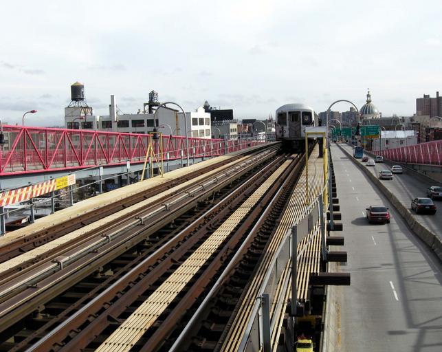 Keywords: J train; on Williamsburg Bridge.jpg vias del tren del metro de NY Jamaica bound J train of J/Z New York City Subway service leaves Williamsburg Bridge on way to Marcy Avenue station Looking east from bridge pedestrian walkway on a sunny winter midday the English language Wikipedia http //en wikipedia org/w/index php title Special Log page File Jbilllyb JPG log February 24 2008 original upload date Jim Henderson original text <nowiki> </nowiki> Jim henderson Williamsburg Bridge rail tracks J New York City Subway service |