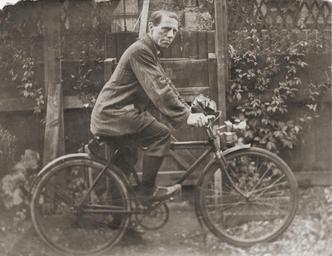 Keywords: Jack Fitzgerald bicycle.jpg Jack Fitzgerald on a bicycle Retouched photo based upon two substandard prints of the same public-domain photograph Vintage bicycles Jack Fitzgerald