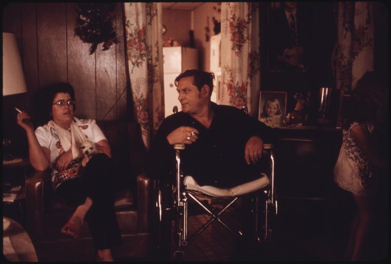| Keywords: JACK SMITH, 42, A DISABLED MINER FROM RHODELL, WEST VIRGINIA NEAR BECKLEY, WITH HIS WIFE, DELLA MAE - NARA - 556576.tif Scope and content JACK SMITH 42 A DISABLED MINER FROM RHODELL WEST VIRGINIA NEAR BECKLEY WITH HIS WIFE DELLA MAE HIS LEGS WERE CRUSHED BY A MINE ROOF CAVE-IN AFTER WORKING ONE YEAR BUT IT TOOK 18 YEARS TO RECEIVE WORKMEN's COMPENSATION IN ADDITION TO THOSE BENEFITS HE MAKES MONEY AS THE OPERATOR OF A BEER JOINT A BLOCK FROM HIS HOME BECAUSE OF THEIR LENGTHY FIGHT FOR COMPENSATION THE SMITHS HAD TO GO ON WELFARE FOR A TIME A MEMORY WHICH MAKES THEM BITTER AND IS A FREQUENT COMPLAINT OF OTHER MINERS WHO ARE INJURED General notes 556576 Local identifier 412-DA-14124 Environmental Protection Agency 12/02/1970 - NARA-Author Corn Jack 1929- Photographer 8464440 <br /> Rhodell Raleigh county West Virginia United States North and Central America inhabited place 3402357 37 6 -81 3 <br /> Still Picture Records Section Special Media Archives Services Division NWCS-S National Archives at College Park 8601 Adelphi Road College Park MD 20740-6001 06/1974 Record group Record Group 412 Records of the Environmental Protection Agency 1944 - 2006 Record group ARC 708 DOCUMERICA The Environmental Protection Agency's Program to Photographically Document Subjects of Environmental Concern compiled 1972 - 1977 Series ARC 542493 File unit File unit ARC Variant control numbers Agency-Assigned Identifier 236/24/014124<br /> NAIL Control Number NWDNS-412-DA-14124 yes Other versions <gallery> File JACK_SMITH _42 _A_DISABLED_MINER_FROM_RHODELL _WEST_VIRGINIA_NEAR_BECKLEY _WITH_HIS_WIFE _DELLA_MAE_-_NARA_-_556576 tif tif File JACK_SMITH _42 _A_DISABLED_MINER_FROM_RHODELL _WEST_VIRGINIA_NEAR_BECKLEY _WITH_HIS_WIFE _DELLA_MAE_-_NARA_-_556576 jpg jpg </gallery> NARA-cooperation PD-USGov NARA TIF images with categorized JPGs |