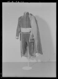 | Keywords: Jacka hörande till Karl XIV Johans lilla serafimerordendräkt - Livrustkammaren - 1881.tif LSH artwork sv Jacka av krabbröd sammet med långa ärmar kantad med smala guldgaloner Sömmarna täcks av ett guldsnöre Jackan är sydd med en mittsöm bak samt två snedställda sidsömmar täckta med guldsnöre Rakt skurna framstycken Knäppning mitt fram bestående av en knapprad på vänster framstycke med 14 runda höga knappar klädda med guldtråd i ett snörmakeriarbete På höger framstycke motsvarande knapphål 23 mm breda kantade med stygn av guldtråd Knäppningen är inramad med guldgalon Mitt på vardera framstycke en iskuren horisontell ficka 205 mm lång med en markerad slå 50 mm bred På vardera framstycke intill ärmen sitter en knapp Axelkarmar 70 mm breda vadderade och uppdelade i 13 tungor kantade med guldgalon Långa smala ärmar med sömmarna täckta av guldsnöre en yttersöm och en innersöm Vid ärmsluten ett 150 mm högt sprund som fortsättning på innersömmen Sprundet har en knäppning bestående av en knapprad med fem knappar samt motsvarande knapphål Ärmarna är i nederkanten uppvikta i 70 mm breda slag vilka är fodrade med gult blankt sidentyg med inslag av guldtråd och nederkanten kantad med guldgalon En 85 mm hög ståndkrage kantad med guldband upptill och i nederkanten över sömmen med guldsnöre På bakstycket under kragen sitter två knappar en knapp på vardera sida Vid dessa är fästat ett 130 mm långt axelsnöre av tvinnad guldtråd vilket löper ner mot axeln snett bak på ryggen På snöret mitt bak sitter två hyskor av två stora stygn av gul silkestråd Sömmarna bildar på baksycket från midjan fyra invikta skörtflikar På vardera sida i nedre kanten en kil Jackan är på insidan fodrad med vit sidenatlas original caption early other date century 19 velvet Färg röd material sammet - silk Färg vit material atlas - gold thread Färg guld material guldtråd size mm 600 fram size mm 650 bak size mm 1055 bröst LRK Karl XIV Johan av Sverige-Norge Jean Baptiste Bernadotte Fest och fritid vid hovet 2003 place of origin original filename LN_B15940_018820 56243 inventory number LRK 19663 1881 CC0 Jacka hörande till Karl XIV Johans lilla serafimerordendräkt - Livrustkammaren - 1881-negative tif <gallery caption Different images of same object > File Jacka hörande till Karl XIV Johans lilla serafimerordendräkt - Livrustkammaren - 78926 tif File Jacka hörande till Karl XIV Johans lilla serafimerordendräkt - Livrustkammaren - 53244 tif File Jacka hörande till Karl XIV Johans lilla serafimerordendräkt - Livrustkammaren - 61796 tif File Jacka hörande till Karl XIV Johans lilla serafimerordendräkt - Livrustkammaren - 70367 tif File Jacka hörande till Karl XIV Johans lilla serafimerordendräkt - Livrustkammaren - 61805 tif </gallery> Ceremonial robes of the Order of the Seraphim Media contributed by LSH dim-with multiple size templates Media contributed by LSH 2014-11 |