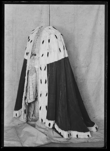 | Keywords: Jacka till riksherreceremonidräkt - Livrustkammaren - 77408.tif Kort jacka formsydd i fem stycken i beigefärgad sidendamast Jackan av burgundisk typ med utanpåliggande band runt om jackans övre del dekorerade med snörmakeribårder av silke så kallade breda galler Två yttre band fortsätter ner längs hela ärmen Axelklaffar i gallerform Ståndkrage 70 mm hög Jackan är kantad nedtill samt i ärmarnas nederfåll med snörmakeribårder Framkanterna avslutas nedtill med en diagonal skärning Jackan knäppes fram med 14 koniska uppåt avsmalnande snörmakeriknappar på högra framstycket höjd 15 mm diameter 10 mm Ärmarna knäppes nedtill med 7 knappar Fodrad i sidentaft Ärmarna fodrade i annat material eventuellt bomull Två skört bak Ögla i grått silkessnöre fäst på högra bakstycket 5 mm från axelsömmen 20 mm från ärmen Öglan mäter 2 x 130 mm En knapp fäst i kragsömmen på högra sidan 10 mm från axelsömmen Enligt gula liggaren är jackan av vit moiré samt hvita gallerpjen som syftar på snörmakeribården Jackan är dock dekorerad med breda galler Handskrivet med blyerts Enl E Bergman troligen förfärd till kröningen 1818 Text i gula liggaren ut nr pag 69 original caption Karl XIV Johans kröning i Stockholm 1half other date century 19 cotton Färg vit d2 - dräkt - foder material bomull - silk Färg vit d5 - dräkt - knappar och spännen material silke - silk Färg vit d4 - dräkt - passpoaler band kantning uppslag material silke size mm 475 bak size mm 490 bak size mm 440 fram size mm 700 ärm g 874 LRK place of origin original filename LN_B00759_003639 54340 inventory number LRK 19162 77408 CC0 Jacka till riksherreceremonidräkt - Livrustkammaren - 77408-negative tif Coronation of Charles XIV John of Sweden Civil uniforms of Sweden Media contributed by LSH unmatched material Media contributed by LSH dim-with multiple size templates Ceremonial mantles in Livrustkammaren Media contributed by LSH 2013-10 |