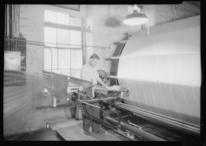 | Keywords: nara:arcid=518770 u.s. national archives usnationalarchives lewis hine lewishine the great depression thegreatdepression work portraits workportraits works progress administration worksprogressadministration paterson new jersey newjersey 1937 blackandwhite monochrome photo border surreal black and white Original Caption:  Paterson, New Jersey - Textiles. Jackson Winding and Warping Company. Picture of a Sipp-Eastwood DY type of High Speed Warper. This machine is similar to the one above except that the warp is wound on to the old type of creel. After the warp is made up it is beamed. On this type of machine it takes from 2-1/4 to 2-1/2 hours to make the usual type of warp. This estimate of time may vary slightly one way or the other, depending upon the number of sections, length of the warp, etc, June 1937  U.S. National Archives’ Local Identifier: 69-RP-711  Photographer:  Hine, Lewis   Subjects: The New Deal Tennessee Valley Authority Works Progress Administration Work Portraits The Great Depression   Persistent URL:  research.archives.gov/description/518770  Repository:  Still Picture Records Section, Special Media Archives Services Division (NWCS-S), National Archives at College Park, 8601 Adelphi Road, College Park, MD, 20740-6001.   For information about ordering reproductions of photographs held by the Still Picture Unit, visit: www.archives.gov/research/order/still-pictures.html  Reproductions may be ordered via an independent vendor. NARA maintains a list of vendors at www.archives.gov/research/order/vendors-photos-maps-dc.html   Access Restrictions: Unrestricted Use Restrictions: Unrestricted Original Caption:  Paterson, New Jersey - Textiles. Jackson Winding and Warping Company. Picture of a Sipp-Eastwood DY type of High Speed Warper. This machine is similar to the one above except that the warp is wound on to the old type of creel. After the warp is made up it is beamed. On this type of machine it takes from 2-1/4 to 2-1/2 hours to make the usual type of warp. This estimate of time may vary slightly one way or the other, depending upon the number of sections, length of the warp, etc, June 1937  U.S. National Archives’ Local Identifier: 69-RP-711  Photographer:  Hine, Lewis   Subjects: The New Deal Tennessee Valley Authority Works Progress Administration Work Portraits The Great Depression   Persistent URL:  research.archives.gov/description/518770  Repository:  Still Picture Records Section, Special Media Archives Services Division (NWCS-S), National Archives at College Park, 8601 Adelphi Road, College Park, MD, 20740-6001.   For information about ordering reproductions of photographs held by the Still Picture Unit, visit: www.archives.gov/research/order/still-pictures.html  Reproductions may be ordered via an independent vendor. NARA maintains a list of vendors at www.archives.gov/research/order/vendors-photos-maps-dc.html   Access Restrictions: Unrestricted Use Restrictions: Unrestricted  |