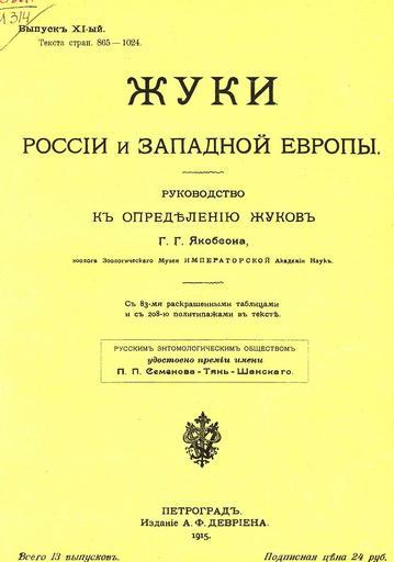 | Keywords: Jacob xi.jpg thumb Титульный лист из моног афии Гео гия Гео гиевича Якобсона http //www zin ru/ANIMALIA/Coleoptera/rus/zhukiros htm Жуки России и Западной Ев опы Издатель фи ма Дев иена Пе вый выпуск вышел в 1905 году последний - в 1915 Иллюст ации большей частью были заимствованы из издания http //www zin ru/ANIMALIA/Coleoptera/rus/calwers htm C G Calwers Kaeferbuch Часть иллюст аций на исовала О Сомина Reproduction of a painting that is in the public domain because of its age PD-scan Georgiy Jacobson Beetles Russia and Western Europe Books from Russia 1915 Files uploaded by Andrew Butko from various sources |