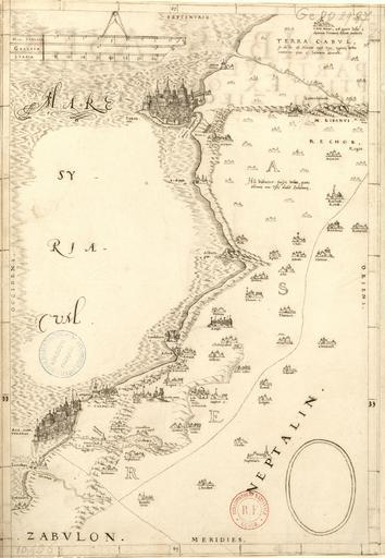| Keywords: Jacob Ziegler. Tibus Aser particularis descriptio ex observatione Iacobi Ziegleri Landavi. 16th century.jpg Jacob Ziegler 1470-1549 Auteur adapté la other date century 16 1 carte ms ill cm 42 5 30 btv1b5963547c/f1 item département Cartes et plans CPL GE DD-2987 10436 object history exhibition history credit line Appartient à Collection d'Anville ; 10436 accession number place of creation ark /12148/btv1b5963547c/f1 item PD-GallicaScan PD-old-auto-1923 1549 Asher Maps of the Tribes of Israel Maps in Latin Old maps of Israel Old maps of Lebanon Maps made in the 16th century Old maps of Galilee Old maps of North District Israel Old maps of Old City of Acre Naphtali ImageNote 1 92 3577 650 417 3450 4995 2 Aca Acon Ptolemais Acre city ImageNoteEnd 1 |