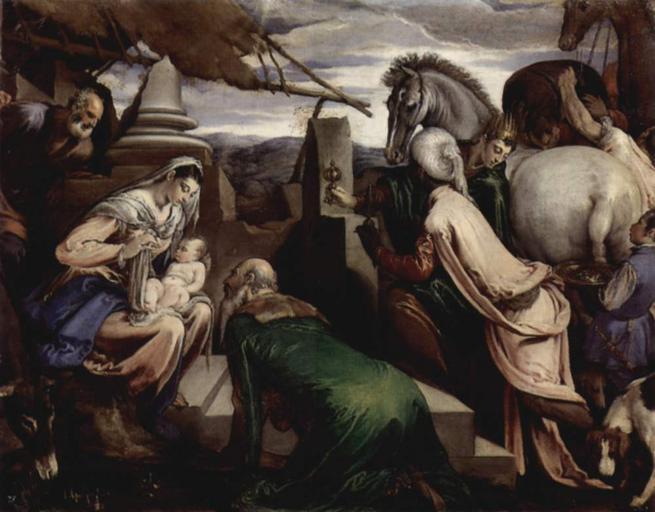 | Keywords: Jacopo da Ponte 001.jpg Artwork Creator Jacopo da Ponte Anbetung der Könige ca 1555 oil canvas cm 92 3 117 5 Rahmenmaße 110 x 136 x 11 cm Institution Kunsthistorisches Museum http //bilddatenbank khm at/viewArtefact id 148 Kunsthistorisches Museum Wien Bilddatenbank http //www google com/culturalinstitute/asset-viewer/adoration-of-the-magi/3gFGTS6uyWFgBg projectId art-project hl en Google Art Project de Venezianische Schule Object history Slg Leopold Wilhelm Accession number Inv -Nr GG_361 The Yorck Project 10 000 Meisterwerke der Malerei DVD-ROM 2002 ISBN 3936122202 Distributed by DIRECTMEDIA Publishing GmbH http //mail wikipedia org/pipermail/wikide-l/2005-April/012195 html Other versions 100px 100px 100px PD-old-100 PD-Art-YorckProject DEFAULTSORT Bassano Jacopo;Adoration of the Magi;Kunsthistorisches Museum;1555 ca 16th-century paintings of the Adoration of the Magi Renaissance paintings of the Adoration of the Magi 1555 paintings Paintings by Jacopo da Ponte in the Kunsthistorisches Museum Adoration of the Magi 1555 ca Green clothing male 16th-century oil on canvas paintings in Italy 1550s paintings in Austria |