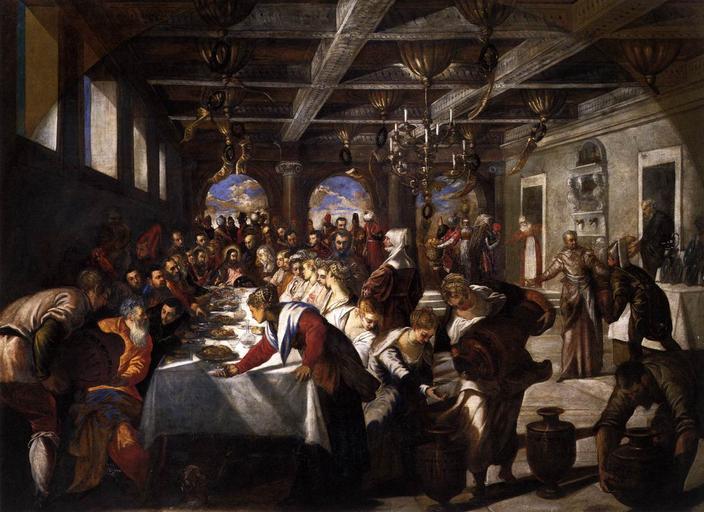 | Keywords: Jacopo Tintoretto - Marriage at Cana - WGA22470.jpg Artwork Creator Jacopo Tintoretto 1561 Oil on canvas size cm 435 535 Institution Santa Maria della Salute Venice object history credit line accession number WGA link 22470 http //www wga hu/art/t/tintoret/3_1560s/2cana jpg http //www wga hu/html/t/tintoret/3_1560s/2cana html Jacopo Tintoretto - Marriage at Cana detail - WGA22471 jpg PD-old-100 painting religious Italian 1551-1600 Paintings by Jacopo Tintoretto by church in Venice Santa Maria della Salute Paintings of the marriage at Cana Sacristy of Santa Maria della Salute Venice 1561 paintings 16th-century religious paintings in Italy 1560s paintings from Italy 1560s paintings in Italy 16th-century oil on canvas paintings in Italy Religious paintings by Jacopo Tintoretto 1560s religious paintings WGA form painting WGA type religious WGA School Italian WGA time period 1551-1600 |