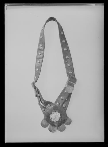| Keywords: Jägarhornsgehäng - Livrustkammaren - 60937.tif LSH artwork sv Jägarhornsgehäng av svart läder med försilvrade beslag och spännen Besatt med metallknappar d 18mm Över skuldran är gehänget enkelt men fördubblas vid de på bröst och rygg befintliga spännnena och bildar nederst vid höften en invecklad knut täckt av en skinnrundel d 150 mm prydd med en vit kokard d 69-70 mm Senare påsatt lädersölja för hirschfängare original caption size mm 50 5 LRK Claes Henrik Lewenhaupt greve ryttmästare place of origin original filename LN_B07257_010137 61685 inventory number LRK 25148 60937 CC0 Jägarhornsgehäng - Livrustkammaren - 60937-negative tif Sashes Media contributed by LSH 2015-11 |