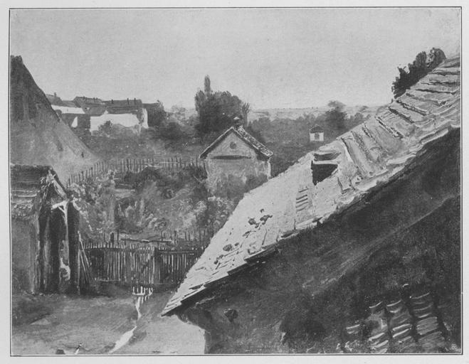 | Keywords: Jahrhundertausstellung 1906 KatNr. 0101.jpg Artwork Creator Carl Blechen Blick auf Gärten und Häuser Oil Canvas Skizze cm 19 25 Nationalgalerie Berlin lt Quelle self scanned from own book Vorstand der Deutschen Jahrhundertausstellung Herausgeber žKatalog zur Ausstellung deutscher Kunst aus der Zeit von 1775 “1875 in der Königlichen Nationalgalerie Berlin Verlag F Bruckmann AG München 1906 2 Bände PD-old-70-1923 Other versions <gallery>File Carl Blechen - View of Rooftops and Gardens - WGA2255 jpg File Carl Blechen - Blick auf Dächer und Gärten - Google Art Project jpg</gallery> Jahrhundertausstellung deutscher Kunst 1906 Carl Blechen in Jahrhundertausstellung deutscher Kunst 1906 ImageNote 1 24 22 1365 1049 1405 1091 2 Rotbraunes Dach mit milchiggrauen Ziegeln bedeckt Schwarze Schatten In den Gärten Grün und Gelbbraun In den andern Häusern überwiegt Grau Eintöniger grauweißer Himmel ImageNoteEnd 1 |