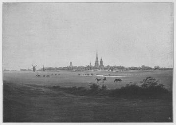 Keywords: Jahrhundertausstellung 1906 KatNr. 0531.jpg Artwork Creator Caspar David Friedrich Wiesen bei Greifswald Oil Canvas cm 35 49 Kunsthalle Hamburg lt Quelle self scanned from own book Vorstand der Deutschen Jahrhundertausstellung Herausgeber žKatalog zur Ausstellung deutscher Kunst aus der Zeit von 1775 “1875 in der Königlichen Nationalgalerie Berlin Verlag F Bruckmann AG München 1906 2 Bände 1820 “1830 PD-old-70-1923 Other versions Caspar David Friedrich in Jahrhundertausstellung deutscher Kunst 1906 Jahrhundertausstellung deutscher Kunst 1906 ImageNote 1 26 18 1526 1087 1581 1127 2 Grün Blaugrau und Gelb in reichen Abtönungen Das Grün beginnt am dunkelsten im Vordergrund wo es mit Braun gemischt ist nimmt im Mittelplan gelb an und schließt vor der Silhouette der Stadt mit einer schmalen gelben Linie ab Die Stadt in milchigem Grau durch das diskrete Grün der Bäume und das schwache Rosa einzelner Dächer bereichert Der Himmel geht von Orange nach hellstem Türkisblau über; das Orange überwiegt “ 1820 “1830 ImageNoteEnd 1 |