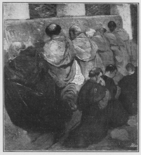 Keywords: Jahrhundertausstellung 1906 KatNr. 0688.jpg Oil Canvas cm 36 34 Ernst Hausmann Berlin lt Quelle self scanned from own book Vorstand der Deutschen Jahrhundertausstellung Herausgeber žKatalog zur Ausstellung deutscher Kunst aus der Zeit von 1775 “1875 in der Königlichen Nationalgalerie Berlin Verlag F Bruckmann AG München 1906 2 Bände 1854 PD-old-70-1923 Other versions ImageNote 1 12 9 649 719 674 742 2 Die Kostüme der obersten Reihe erdbeerrot mit milchigen Nuancen Nur der links Knieende braunschwarz Die Wand hinter den Knieenden gebräuntes Orange Die drei schwarzen Mönche der unteren Reihe knien auf Olivegrün Zwei purpurrote Mützen “ 1854 ImageNoteEnd 1 Friedrich Karl Hausmann Jahrhundertausstellung deutscher Kunst 1906