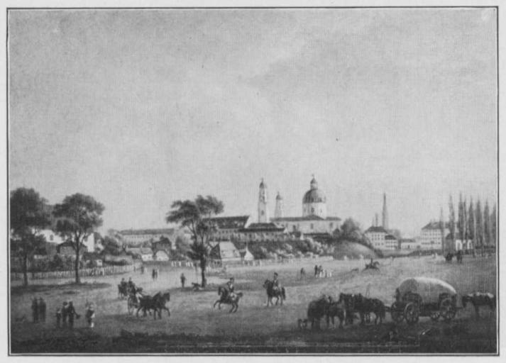 | Keywords: Jahrhundertausstellung 1906 KatNr. 0837.jpg Oil Canvas cm 31 44 Neue Pinakothek München lt Quelle self scanned from own book Vorstand der Deutschen Jahrhundertausstellung Herausgeber žKatalog zur Ausstellung deutscher Kunst aus der Zeit von 1775 “1875 in der Königlichen Nationalgalerie Berlin Verlag F Bruckmann AG München 1906 2 Bände 1817 PD-old-70-1923 Other versions Joseph Klotz Jahrhundertausstellung deutscher Kunst 1906 Albrecht Adam ImageNote 1 14 16 962 684 990 711 2 In dem Platz schwach Rosa mit Gelb Gelbgrüner Rasen Die ersten Häuser zeigen die Farbe des Platzes die Mehrzahl weiß mit grauen Dächern In der Staffage lebhaftes Weiß Braun Grau und Rot Hellblauer Himmel mit rosagrauen Wolken “ Bez auf der Rückseite Gemalt von Joseph Klotz 1817 Staffage von Albrecht Adam ImageNoteEnd 1 |