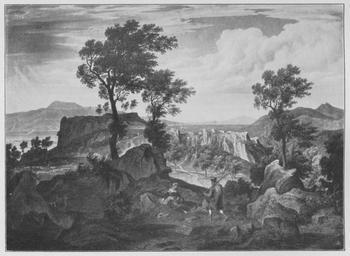 | Keywords: Jahrhundertausstellung 1906 KatNr. 0880.jpg Artwork Creator Joseph Anton Koch Die Serpentara bei Olevano Oil Canvas cm 56 79 Anton v Schuhmacher Innsbruck lt Quelle self scanned from own book Vorstand der Deutschen Jahrhundertausstellung Herausgeber žKatalog zur Ausstellung deutscher Kunst aus der Zeit von 1775 “1875 in der Königlichen Nationalgalerie Berlin Verlag F Bruckmann AG MĂĽnchen 1906 2 Bände 1820 PD-old-70-1923 Other versions Joseph Anton Koch Jahrhundertausstellung deutscher Kunst 1906 ImageNote 1 18 16 1540 1121 1579 1157 2 Braungraue Felsen grĂĽnbraune Bäume Der Hirt in Braun und Blau mit grauem Korb die Frau in Rot und Blau Im Hintergrund graublaue Berge Blauer Himmel mit grauen weiĂź und braun gesäumten Wolken “ Bez unten rechts auf einem Stein braun J K “ 1820 ImageNoteEnd 1 |