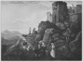 | Keywords: Jahrhundertausstellung 1906 KatNr. 1423.jpg Artwork Creator Ludwig Richter Civitella Oil Canvas cm 54 77 Kgl Gemäldegalerie Dresden lt Quelle Vorstand der Deutschen Jahrhundertausstellung Herausgeber žKatalog zur Ausstellung deutscher Kunst aus der Zeit von 1775 “1875 in der Königlichen Nationalgalerie Berlin Verlag F Bruckmann AG München 1906 2 Bände ; self scanned from own book 1827 PD-old-70-1923 Other versions Ludwig Richter Jahrhundertausstellung deutscher Kunst 1906 Galerie Neue Meister Dresden ImageNote 1 8 13 1287 946 1312 977 2 Die hellen bläulichgrauen Felsen mit Braun bedeckt Die braunen Bäume zum Teil rosa belichtet Die Berge in hellem matten Blaugrau Der Himmel beginnt gelblich und ist hier mit rosa Wolken bedeckt geht in Hellblau über In den Kostümen gedämpftes Braunrot Blau Hellgrau etc “ 1827 ImageNoteEnd 1 |