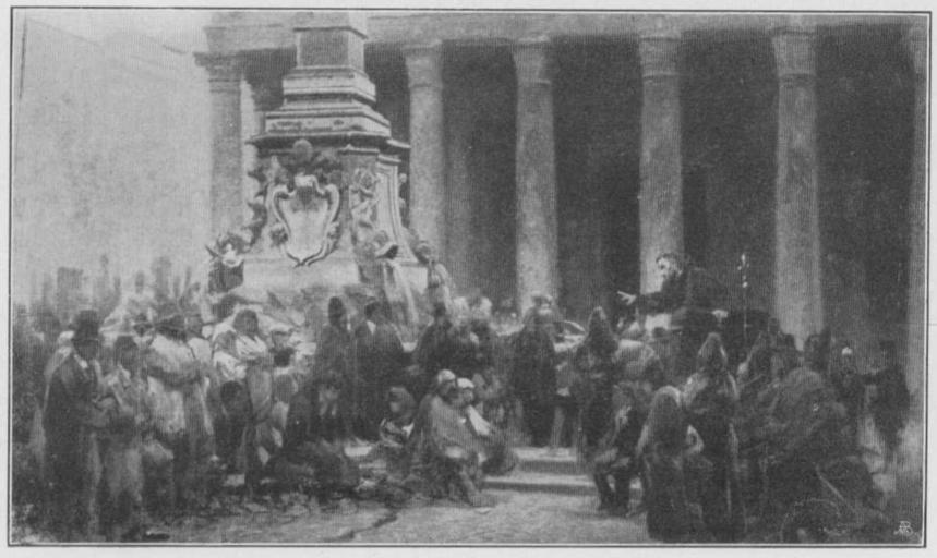 | Keywords: Jahrhundertausstellung 1906 KatNr. 1429.jpg Wilhelm Riefstahl Kapuzinerpredigt vor dem Pantheon Technique Oil Canvas Skizze cm 29 46 Frau Christiane Riefstahl München lt Quelle Vorstand der Deutschen Jahrhundertausstellung Herausgeber žKatalog zur Ausstellung deutscher Kunst aus der Zeit von 1775 “1875 in der Königlichen Nationalgalerie Berlin Verlag F Bruckmann AG München 1906 2 Bände ; self scanned from own book 1870 PD-old-70-1923 Other versions Wilhelm Riefstahl Jahrhundertausstellung deutscher Kunst 1906 ImageNote 1 12 5 1213 719 1238 738 2 Das Pantheon in violettem Grau das auch die gelbliche Fassade zur Linken beschattet Bläulichweißgrauer Brunnen mit braunen Konturen Die Menge meist in dunklen Mischfarben Dazwischen rote Einzelheiten Der Kapuziner in brauner Kutte auf schwarzer Kanzel “ 1870 ImageNoteEnd 1 |