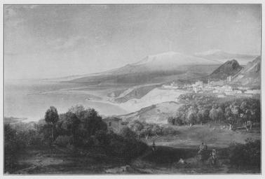 | Keywords: Jahrhundertausstellung 1906 KatNr. 1454.jpg Artwork Creator Carl Rottmann Taormina mit dem Ätna Oil Canvas cm 49 73 Neue Pinakothek München lt Quelle Vorstand der Deutschen Jahrhundertausstellung Herausgeber žKatalog zur Ausstellung deutscher Kunst aus der Zeit von 1775 “1875 in der Königlichen Nationalgalerie Berlin Verlag F Bruckmann AG München 1906 2 Bände ; self scanned from own book 1834 “35 PD-old-70-1923 Other versions Carl Rottmann Jahrhundertausstellung deutscher Kunst 1906 ImageNote 1 23 30 1773 1173 1823 1234 2 Das Braun des Vordergrundes geht im Mittelplan in milde gelbliche Töne über Der untere Teil des Ätna von graubläulichen Nebeln umgeben weiße Spitze mit grauen Abhängen Blaue See Der Himmel beginnt unten mit rosagrauen Tönen und nähert sich in der rechten Hälfte dem lebhaften Blau des Meeres “ Bez unten rechts braun Rottmann “ 1834 “35 ImageNoteEnd 1 |