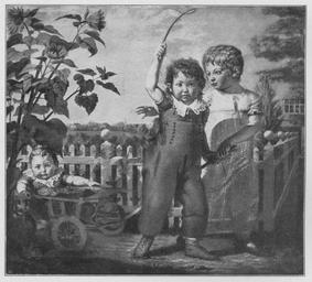Keywords: Jahrhundertausstellung 1906 KatNr. 1466.jpg Artwork Creator Philipp Otto Runge Die Hülsenbeckschen Kinder Oil Canvas cm 130 5 140 5 Kunsthalle Hamburg lt Quelle Vorstand der Deutschen Jahrhundertausstellung Herausgeber žKatalog zur Ausstellung deutscher Kunst aus der Zeit von 1775 “1875 in der Königlichen Nationalgalerie Berlin Verlag F Bruckmann AG München 1906 2 Bände ; self scanned from own book 1805 PD-old-100-1923 Other versions Philipp Otto Runge Jahrhundertausstellung deutscher Kunst 1906 Paintings of children ImageNote 1 24 20 1413 1282 1471 1333 2 Das Fleisch im erhöhten Ton des Blonds der Haare mit Rosa Dasselbe Blond bildet die helleren Schattenpartien des weißgrauen Zauns und der Häuser Der Junge in gurkengrünem Anzug und gelben Schuhen Das Mädchen in weißem Kleid mit grauen Tiefen und blonden Schatten Das Kleinste in rotem Kleid “ der vertiefte Ton des Fleischrosas “ mit weißen Sternchen Das Rot kommt in den Schuhen des Mädchens aber ohne Weiß wieder Das Hellbraun des Wagens kommt im Boden wieder Das Grün der Vegetation in grauen und hellbraunen Spielarten Die Dächer der Häuser in gedämpftem Rosa Ein Reflex des Rosa in dem grauen Himmel “ 1805 ImageNoteEnd 1 |