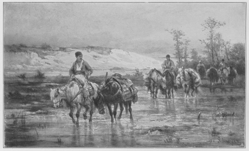| Keywords: Jahrhundertausstellung 1906 KatNr. 1592.jpg Artwork Creator Adolf Schreyer Serbische Pferde durch die Furt gehend Oil Canvas cm 43 72 Frau Emma Nelke Berlin lt Quelle Vorstand der Deutschen Jahrhundertausstellung Herausgeber žKatalog zur Ausstellung deutscher Kunst aus der Zeit von 1775 “1875 in der Königlichen Nationalgalerie Berlin Verlag F Bruckmann AG München 1906 2 Bände ; self scanned from own book PD-old-70-1923 Other versions Adolf Schreyer Jahrhundertausstellung deutscher Kunst 1906 ImageNote 1 21 14 1814 1095 1865 1135 2 Das durchsichtige Wasser mit grünlichen rosa grauen und weißen Reflexen der Farben der Pferde und ihres Gepäcks Die Erde des aufgerissenen Hügels etwa ockergelb mit weißen und grauen Stellen Bläulichgrauer Wolkenhimmel “ Bez unten rechts braun Ad Schreyer ImageNoteEnd 1 |