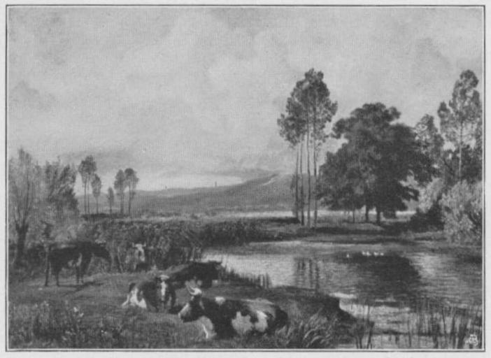 | Keywords: Jahrhundertausstellung 1906 KatNr. 1631.jpg Carl Seibels Landschaft mit weidenden Kühen Technique Oil Canvas cm 23 32 5 Großherzogl Museum Schwerin lt Quelle Vorstand der Deutschen Jahrhundertausstellung Herausgeber žKatalog zur Ausstellung deutscher Kunst aus der Zeit von 1775 “1875 in der Königlichen Nationalgalerie Berlin Verlag F Bruckmann AG München 1906 2 Bände ; self scanned from own book PD-old-70-1923 Other versions Carl Seibels Jahrhundertausstellung deutscher Kunst 1906 ImageNote 1 10 9 894 646 917 669 2 Das Wasser bläulich mit weißen Reflexen und braunen Schatten Auf der grünen Weide das Vieh in vorwiegend blauschwarzen Farben neben Braun und Weiß Der Hügelzug in der Ferne bläulichgrau Graue und weiße Wolken “ Bez unten links rot C Seibels ImageNoteEnd 1 |