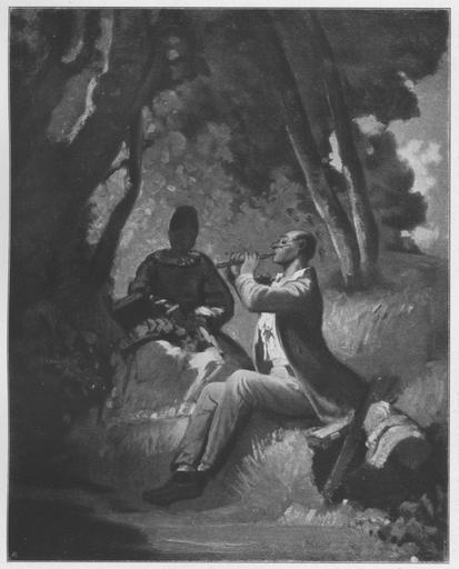 | Keywords: Jahrhundertausstellung 1906 KatNr. 1696.jpg Artwork Creator Carl Spitzweg Flötenkonzert Oil Canvas cm 37 30 Kommerzienrat C A Jung Elberfeld lt Quelle Vorstand der Deutschen Jahrhundertausstellung Herausgeber žKatalog zur Ausstellung deutscher Kunst aus der Zeit von 1775 “1875 in der Königlichen Nationalgalerie Berlin Verlag F Bruckmann AG München 1906 2 Bände ; self scanned from own book um 1851 PD-old-70-1923 Other versions Carl Spitzweg in Jahrhundertausstellung deutscher Kunst 1906 Jahrhundertausstellung deutscher Kunst 1906 Paintings in Wuppertal ImageNote 1 25 21 1663 2089 1716 2128 2 Die Figuren sitzen auf einem hellen Grün das mit Gelb versetzt und mit gelben Farbentupfen von links beleuchtet ist Der Schatten dunkelgrün und braungrün Im Rock des Musikanten werden das Gelb und das Braun vereinigt Graue Beinkleider deren rechte Seite in der Nähe des Grases das starke Rot des Stillebens im rechten Winkel reflektiert Dieses Rot Siegelrot auf einem dunkleren mehr violetten Rot ist die stärkste Farbe des Bildes Darauf das reine Gelb des Hutes und ein wenig Blau von der Bläue des Himmels Dasselbe Blau bildet in etwas lichterem Ton den Streifen der von der Weste des Flötenbläsers sichtbar bleibt Das Fleisch hellbraun gerötete Nase In der Frau die Auflösung der Rot und Blau des Stillebens Entscheidend ein Rosa das von ganz lichten violetten Strichen eingerahmt wird die ihrerseits auf dunkleren roten Tönen stehen In dem stark beschatteten Ton des Gesichtes scheint sich eine Verwandtschaft mit dem Siegelrot zu erhalten Dunkelbraunes Haar mit schwarzen Tiefen Der große Zylinder den die Gattin mit gelbgrünem Kranze schmückt ist schwarz mit bläulichen Lichtern Die Ecke vorn links gelb und braun “ Um 1851 ImageNoteEnd 1 |
