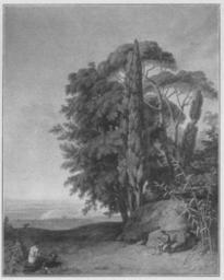 | Keywords: Jahrhundertausstellung 1906 KatNr. 1789.jpg Artwork Creator Johann Heinrich Wilhelm Tischbein Arkadische Landschaft Oil Canvas cm 60 47 Herzogliches Museum Gotha lt Quelle Vorstand der Deutschen Jahrhundertausstellung Herausgeber žKatalog zur Ausstellung deutscher Kunst aus der Zeit von 1775 “1875 in der Königlichen Nationalgalerie Berlin Verlag F Bruckmann AG München 1906 2 Bände ; self scanned from own book 1783 PD-old-100-1923 Other versions Johann Heinrich Wilhelm Tischbein Jahrhundertausstellung deutscher Kunst 1906 ImageNote 1 9 9 803 1014 822 1029 2 Brauner Vordergrund mit braungrünen Bäumen Die Ferne in violettgrauen und grünlichgrauen Tönen Der Himmel beginnt unten gelb und geht durch Rosa in Hellblau über “ Bez unten rechts braun dal Vero in Frascati W Tischbein 1783 ImageNoteEnd 1 |
