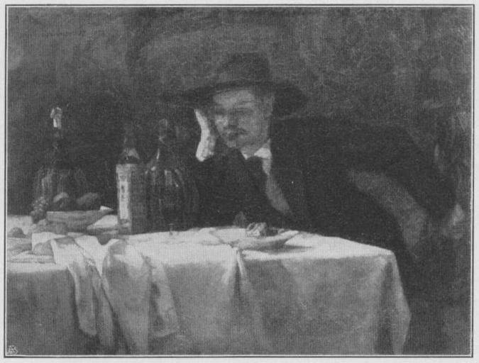 | Keywords: Jahrhundertausstellung 1906 KatNr. 1824.jpg  Artwork Creator Wilhelm Trübner Trinker am Tisch Oil Canvas cm 27 34 Geheimer Medizinalrat Schultze Bonn lt Quelle Vorstand der Deutschen Jahrhundertausstellung Herausgeber žKatalog zur Ausstellung deutscher Kunst aus der Zeit von 1775 “1875 in der Königlichen Nationalgalerie Berlin Verlag F Bruckmann AG München 1906 2 Bände ; self scanned from own book 1872 PD-old-70-1923 Other versions Wilhelm Trübner in Jahrhundertausstellung deutscher Kunst 1906 Jahrhundertausstellung deutscher Kunst 1906 ImageNote 1 9 9 952 714 968 734 2 Weißes Tischtuch mit grauen Schatten Braunumwickelte Flaschen vorwiegend braune Früchte darunter ein isoliertes Rot Der Trinker im Schatten schwarzer Rock dunkelgraue Weste Rötliches Fleisch mit dunkelgrauen Schatten Schwarzer Hut Olivener Hintergrund mit braunen Ornamenten “ Bez oben links schwarz W Trübner 12 1872 “ Rom ImageNoteEnd 1  |